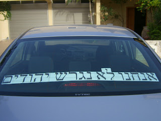 אם כל אחד מאיתנו יכין ויתלה שלטים כאלו על מרפסת ביתו ועל החלון האחורי במכוניתו, נזכה לראות רבבות מכוניות נוסעות ברחבי הארץ עם המסר הברור הזה, שעם ישראל לא ימאס שוב בארצו של הקב”ה, ולא יתן את ידו שנית לגירוש יהודים מנחלת אבותם, ושפשע גוש קטיף לעולם לא יחזור על עצמו, לא ביהודה ושומרון, ולא בירושלים. מחזה זה יהיה בו גם בכדי לתת חיזוק ענקי וגב מוראלי לכל החיילים הנאמנים לה’ ולתורתו, שלא להיכנע לתכתיבי השמאל הבוגדני, שמנסה לשכנע אותם שזה בסדר לגרש יהודים. המשוואה היא די פשוטה: אם יהיו מספיק חיילים שיסרבו לגרש יהודים = אין סיכוי שיהיו עוד גירושים ועקירות = נשארים ביהודה ושומרון לנצח = ירושלים שלנו לעד = גם הבית שלכם יהיה מקום בטוח”. כלומר: בכמה דקות עבודה (תעסוקה לילדים…), ובהשקעה של כמה שקלים בודדים, כל אחד יכול ליצור בביתו, אפילו ע”י המדפסת הביתית, שלטים כאלו, שהשפעתם על דעת הקהל היא עצומה (זוכרים את שלטי “העם עם הגולן”?). אם מישהו רוצה לדעת כיצד ליצור שלטים כאלו, או רוצה שאני אעזור לו בכך, מוזמן לפנות אלי לאימייל: amyisraelchay@yahoo.com . עדיפות תינתן לחיילים שרוצים לעשות “שמח” בבסיס”. |