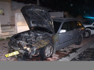מצ”ב התמונות מהרכב השרוף,בית כנסת אלגריבה שרואים עדיין את העשן היוצא מחלונות המקום,פעילות הערב בשכונה וברמלה יחד עם תלמידי ישיבת שעלבים כולל השיחה של הרב בן ישי.